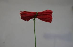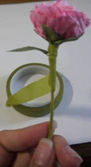 用綠膠帶將花萼和綠鐵絲整個纏繞成一體