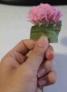 中間黏一根鐵絲,這樣才會讓葉子很挺