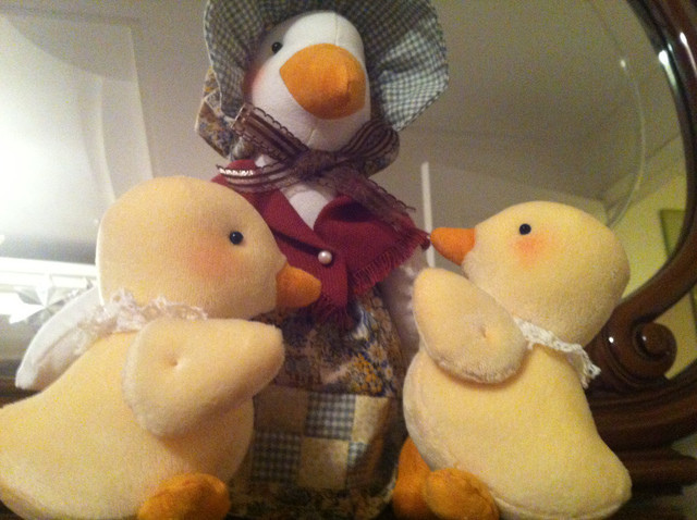 媽媽就自己拿著 倆個鴨寶寶在那邊對話